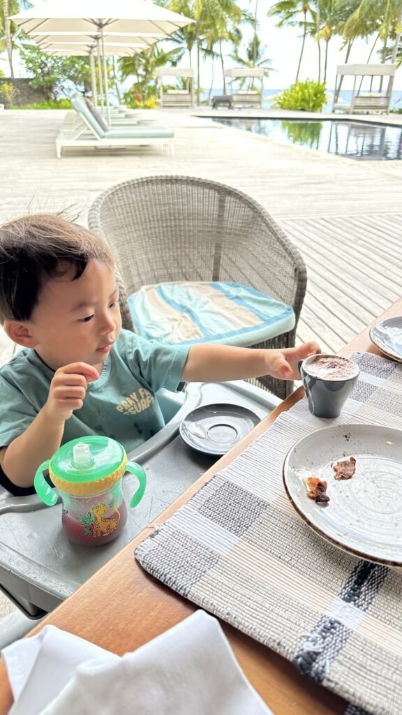 Our last day on Vomo also happened to be my wife’s birthday. The team at Vomo did a fantastic job singing her a birthday song while also bringing out a very delicious cake for her to blow out (Paxton tried but he hasn’t quite learned to blow out yet).
